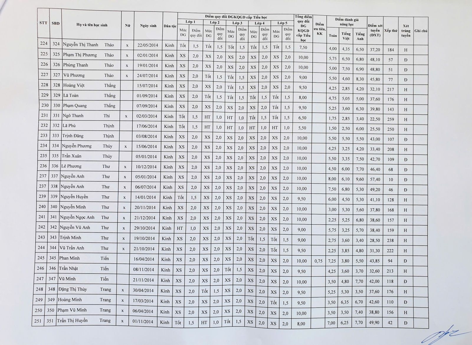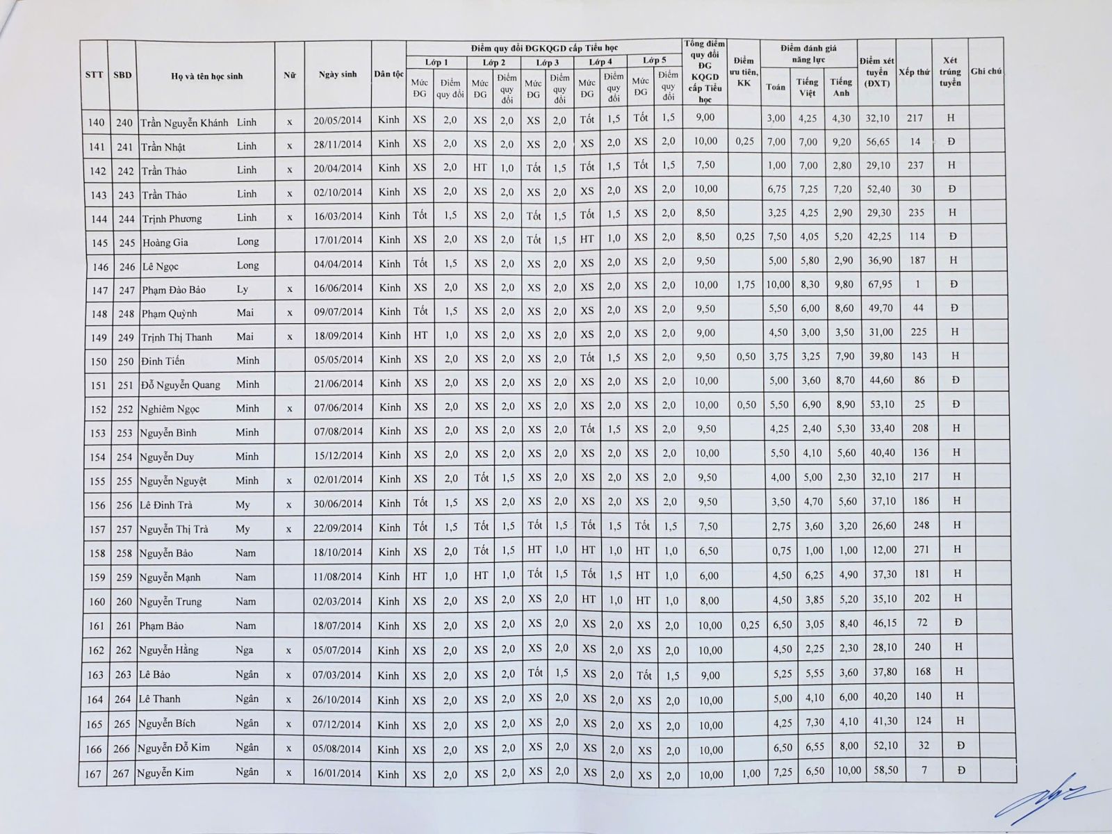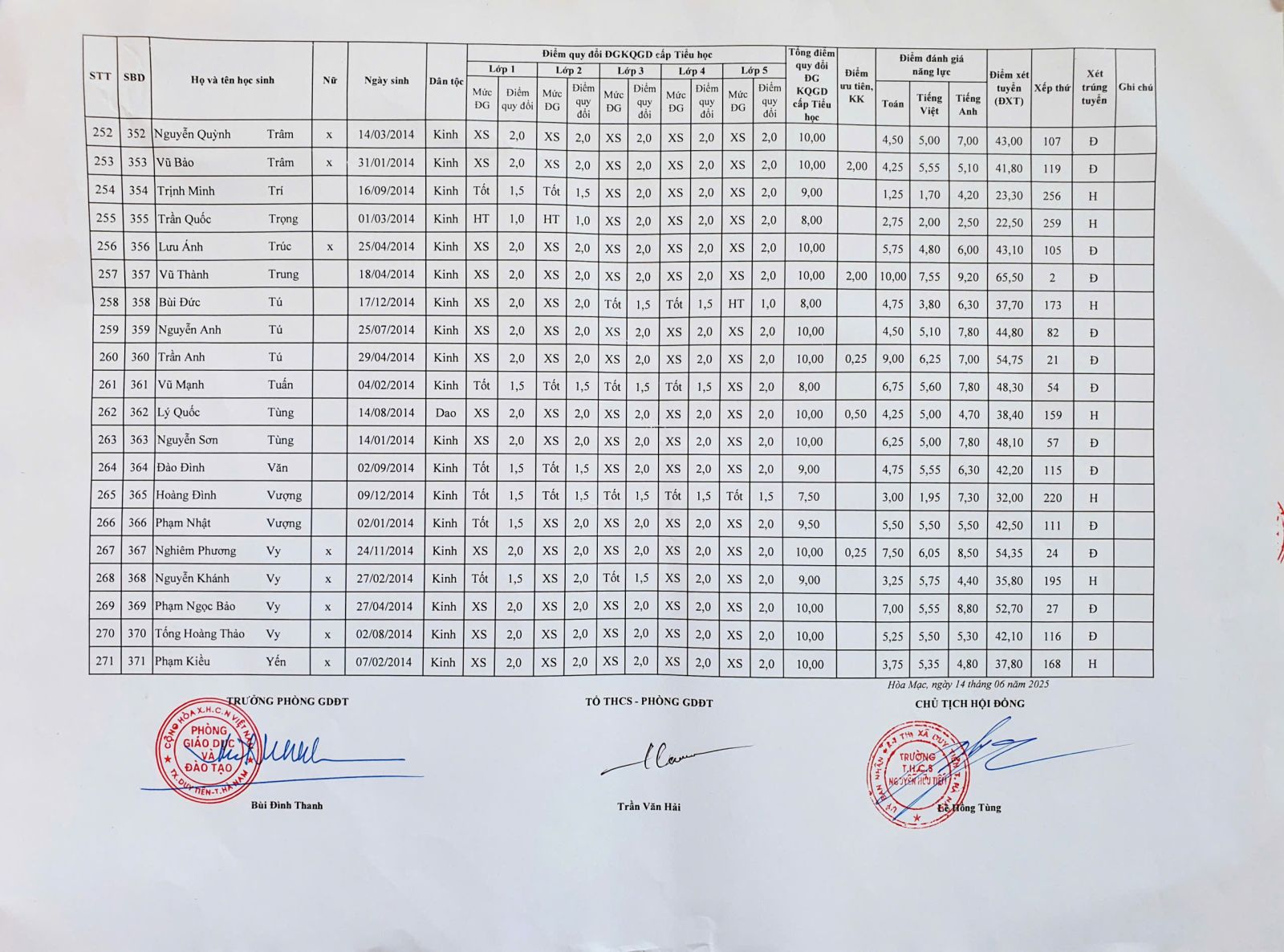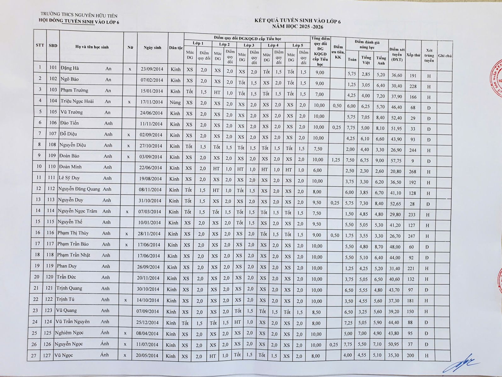 Kết quả tuyển sinh vào lớp 6 năm học 2025 – 2026