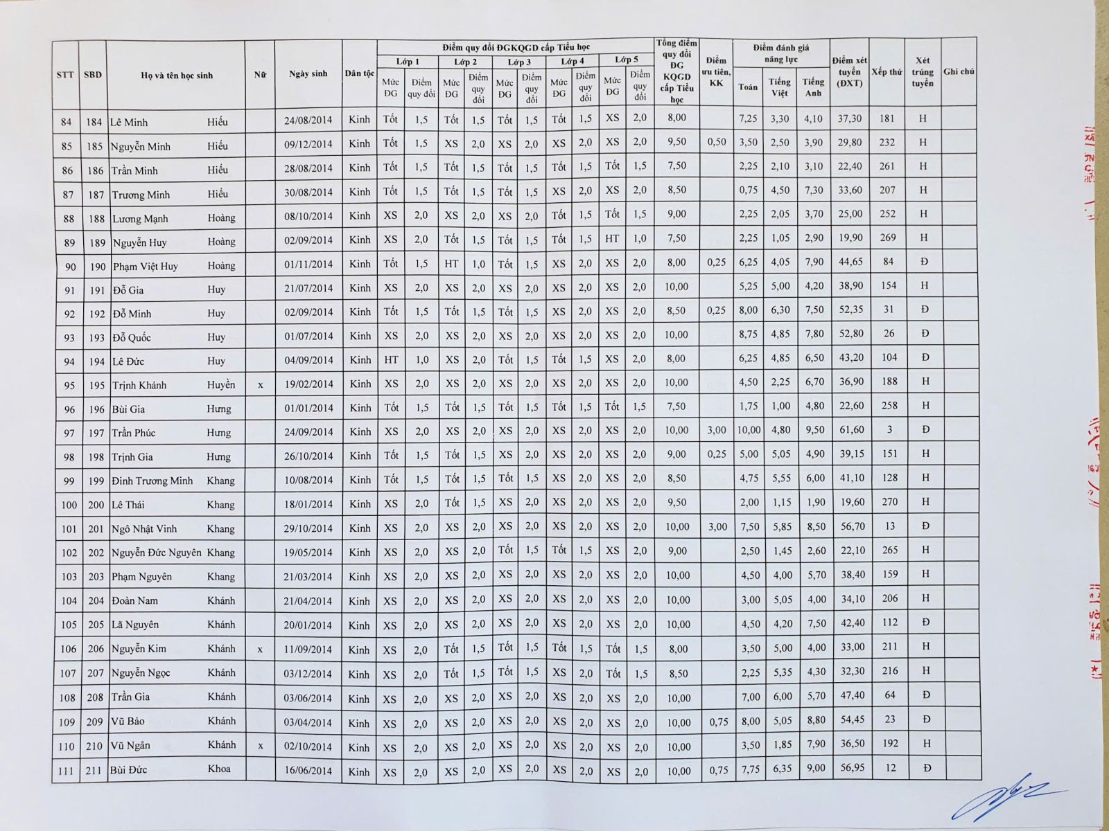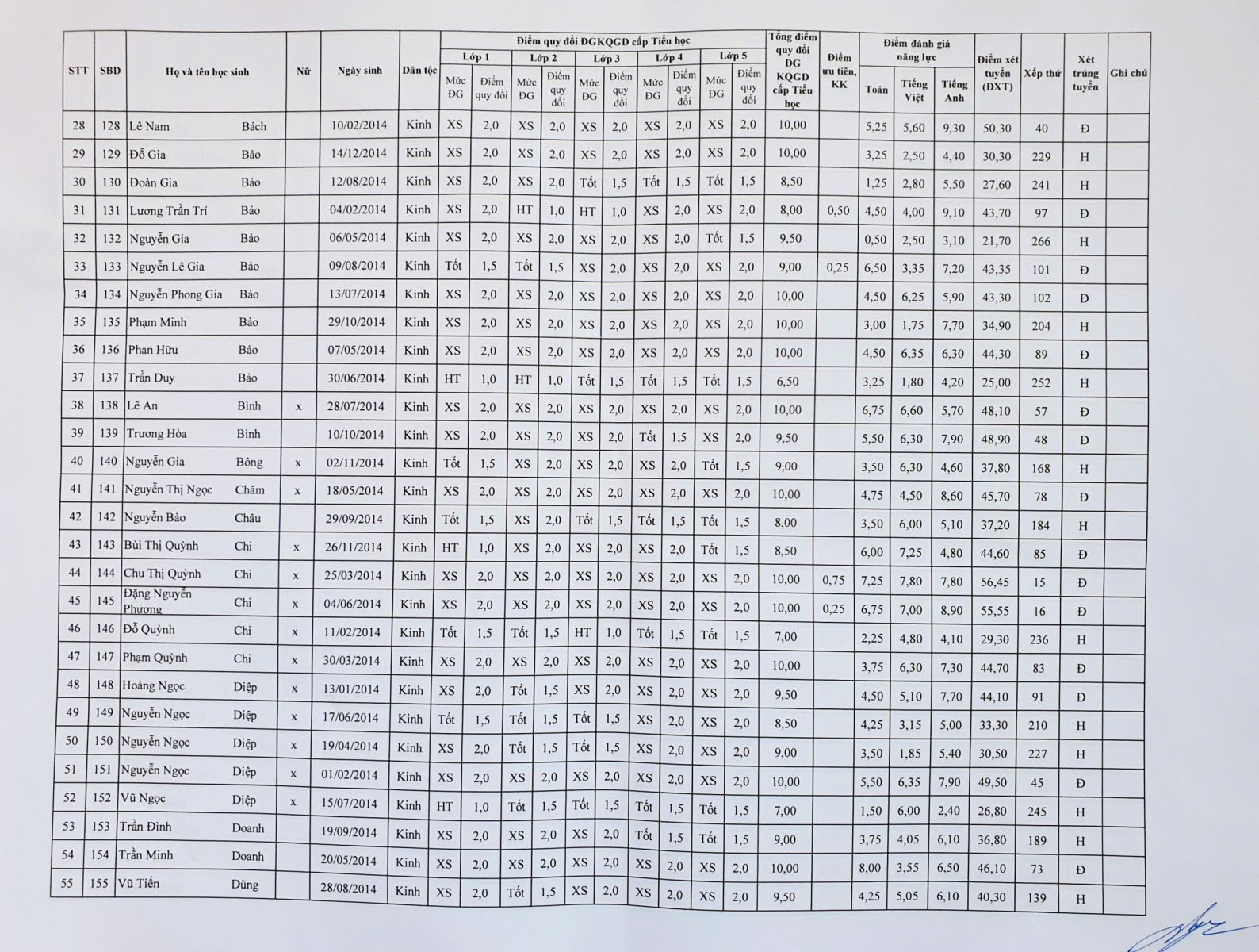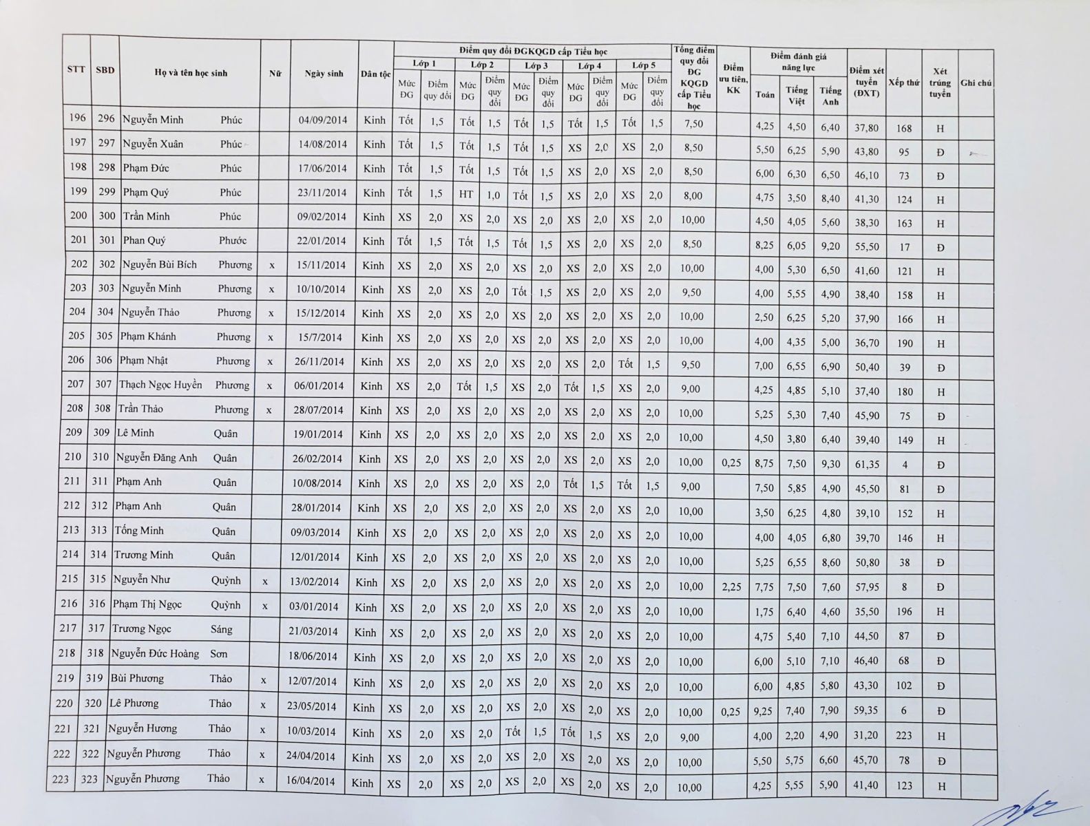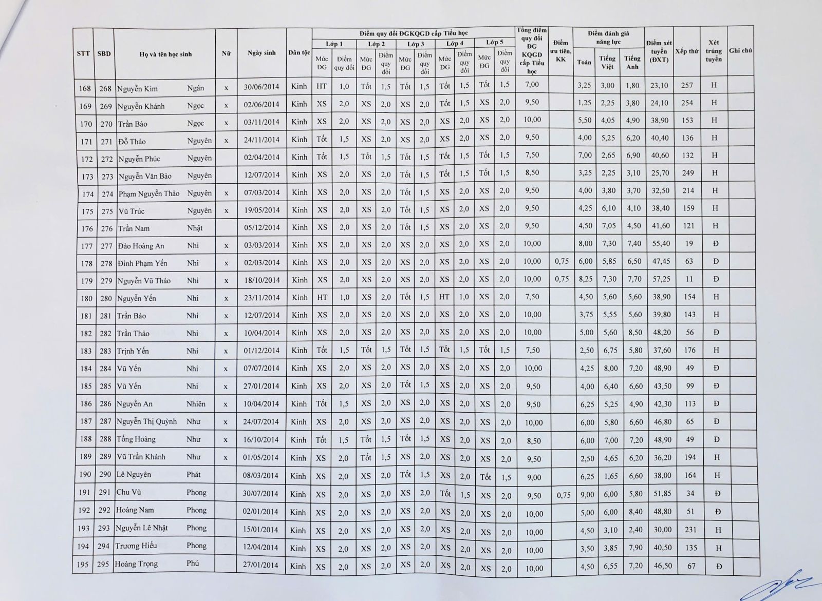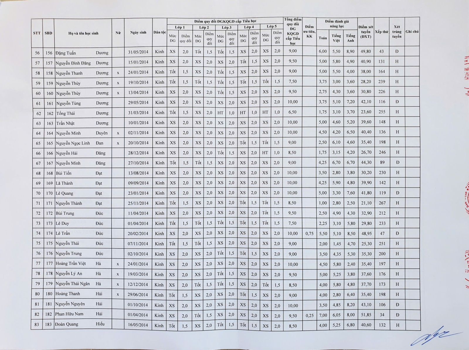 Kết quả tuyển sinh vào lớp 6 năm học 2025 – 2026